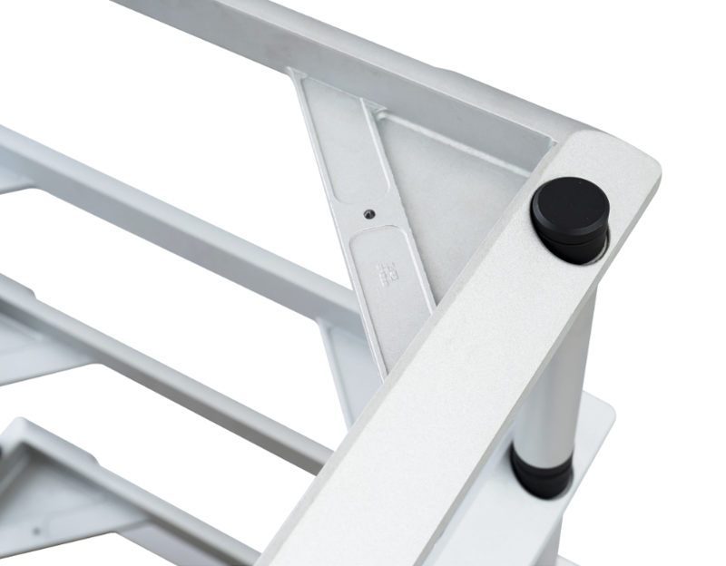 4个尖钉高度均可调整。稳固的架板足以承载重型设备,尽管只有尖头作为接触点,却能实现优异的稳定性。-
