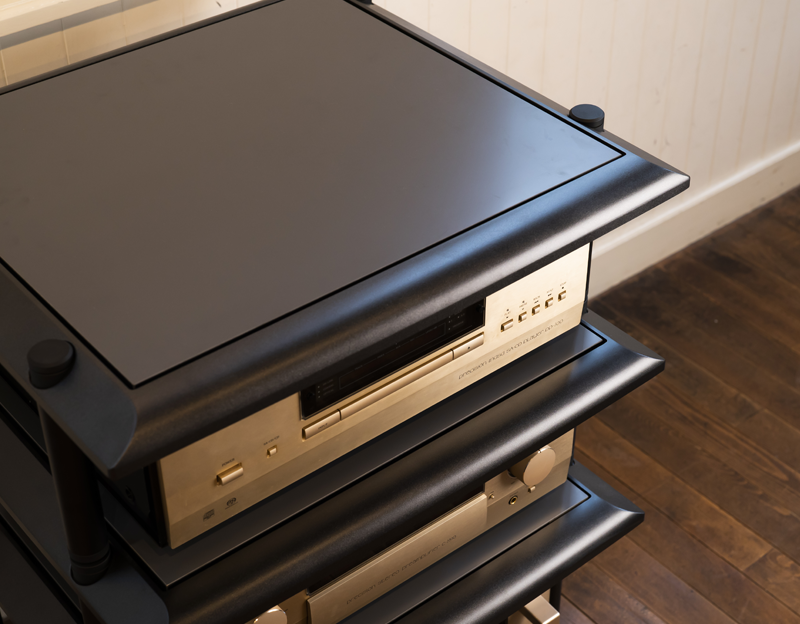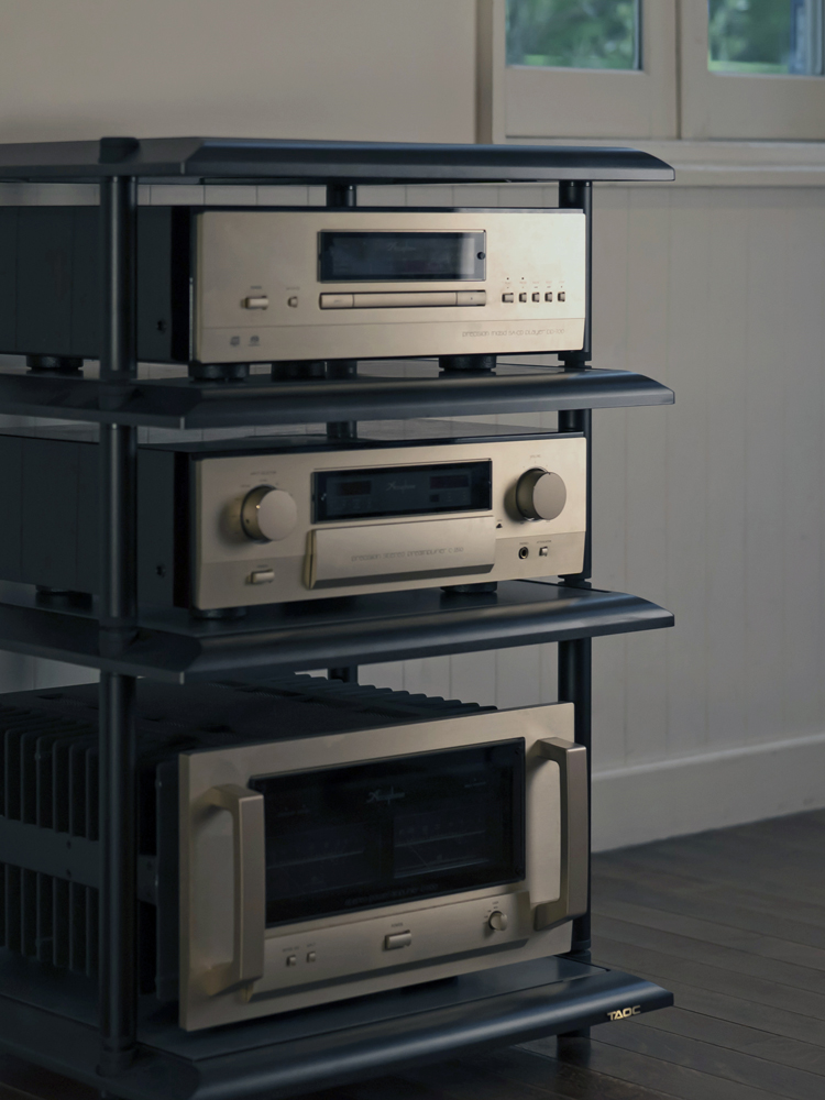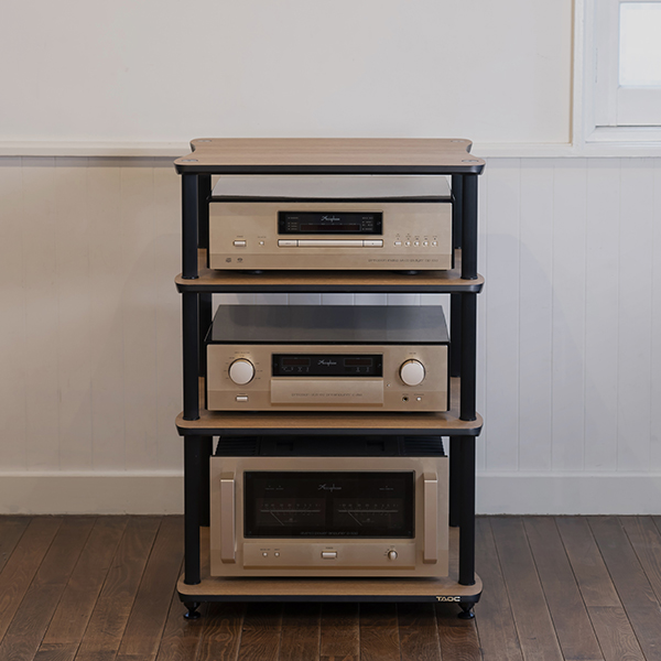架框和架板采用相同色系的颜色。整体感油然而生,使作为主角的音响设备更加突出。-
