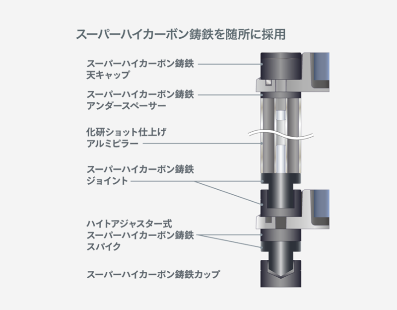 为了以最高质量制造FC分离器,我们采用了<超高碳铸铁>材料,与传统材料相比具有更强的吸振性。效仿CSR的含铸铁粉支柱,兼顾减振和隔振性能。