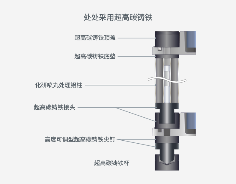 为了以最高质量制造FC分离器,我们采用了<超高碳铸铁>材料,与传统材料相比具有更强的吸振性。效仿CSR的含铸铁粉支柱,兼顾减振和隔振性能。