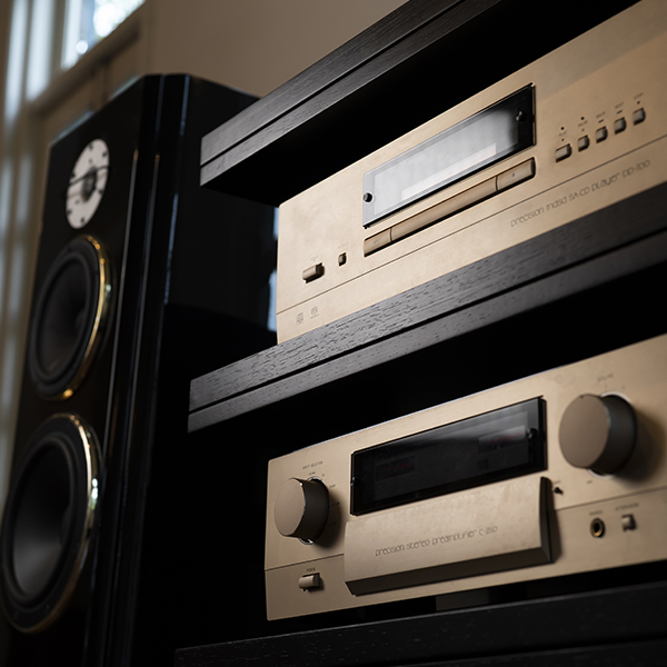 架框和架板采用相同色系的颜色。整体感油然而生,使作为主角的音响设备更加突出。-