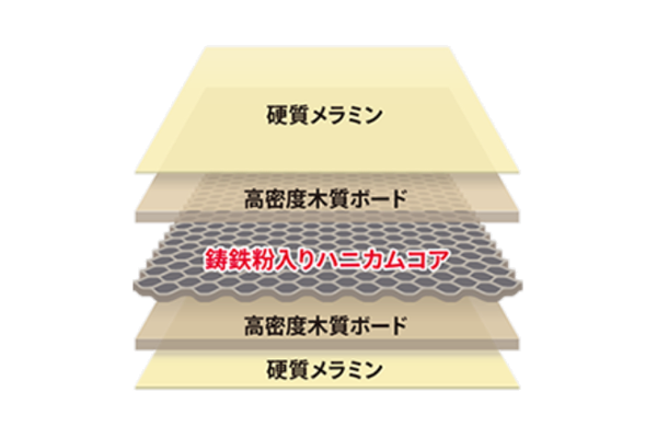 大量填充铸铁粉的蜂窝芯实现了高水平的吸振性能和刚性。"适度吸收振动"和"适度释放振动"是铸铁粉的2个特性,作为将振动能转化为热能的摩擦减振技术,能让音响设备尽情发挥原有的性能,可以说是提供"最好的舞台"。