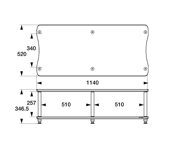 ・如果将尖钉更改为脚轮,音响架整体的高度会增高65mm。