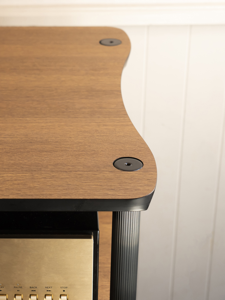 充分确保安装音响设备所需的空间,同时在四面勾勒各种曲线,塑造出兼顾功能性和艺术性的架板,杜绝任何浪费。