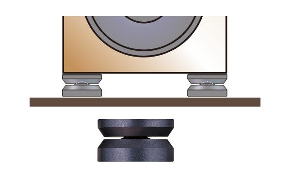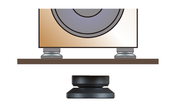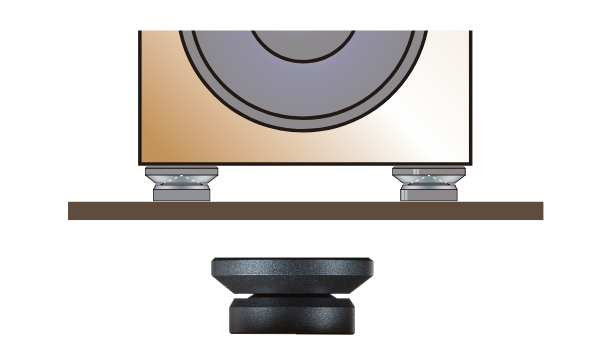 オーディオラックからスピーカースタンドまで、手軽にスパイク受けとして導入しやすく、スパイクによる振動遮断効果をサポートします。